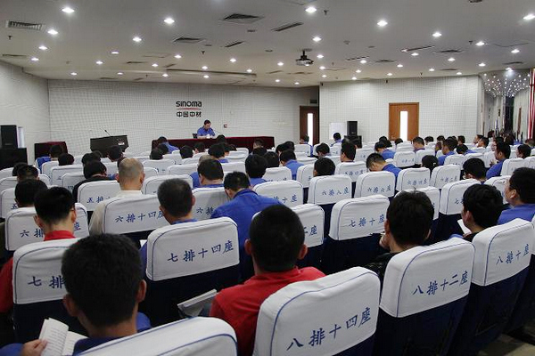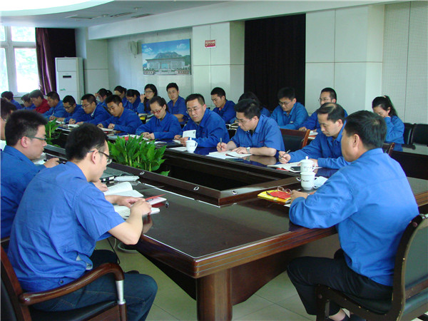 副总经理张德刚为所联系的一分厂、短切毡、耐碱纤维、复材公司党支部讲解《准则》和《条例》