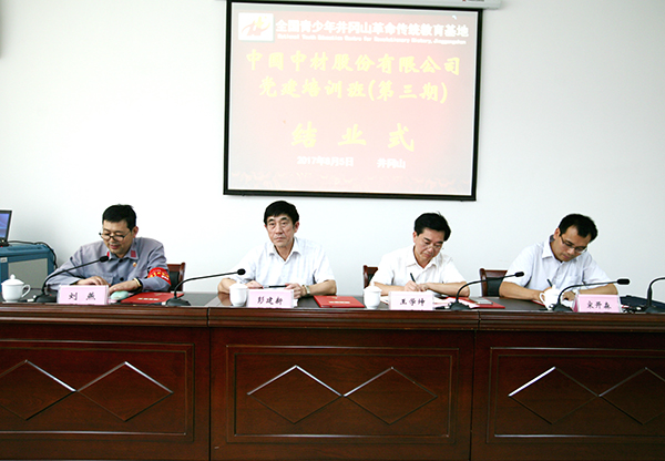 中材股份党委副书记、总裁彭建新在培训班结业式的讲话中充分肯定了本期培训班取得的良好效果,并从“为什么举办党建培训班”“为什么在井冈山举办培训班”“关于培训的收获”等方面与学员们作了交流,并结合落实企业党建工作责任制,对所属企业党组织负责人和党务工作者提出四点要求:一要进一步提高思想认识,增强做好国有企业党建工作的政治责任感;二要围绕企业党组织发挥领导核心和政治核心作用,建立和切实落实党建工作责任制;三要抓好党建工作创新,创建党建工作品牌,不断提高国有企业党建工作水平,为实现企业科学发展提供有力保证;四要坚持两个“一以贯之”,做到“两手抓、两手硬、两促进”,把党建工作优势转化为改革发展优势,推动各项工作再上新台阶,为落实集团三大战略、加快公司三型企业建设作出新的更大贡献,以优异成绩迎接党的十九大胜利召开 。